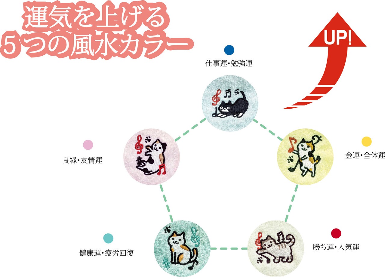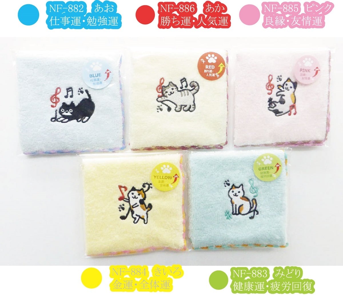 風水にゃんこハンカチ NF-885 ピンク 良縁・友情運