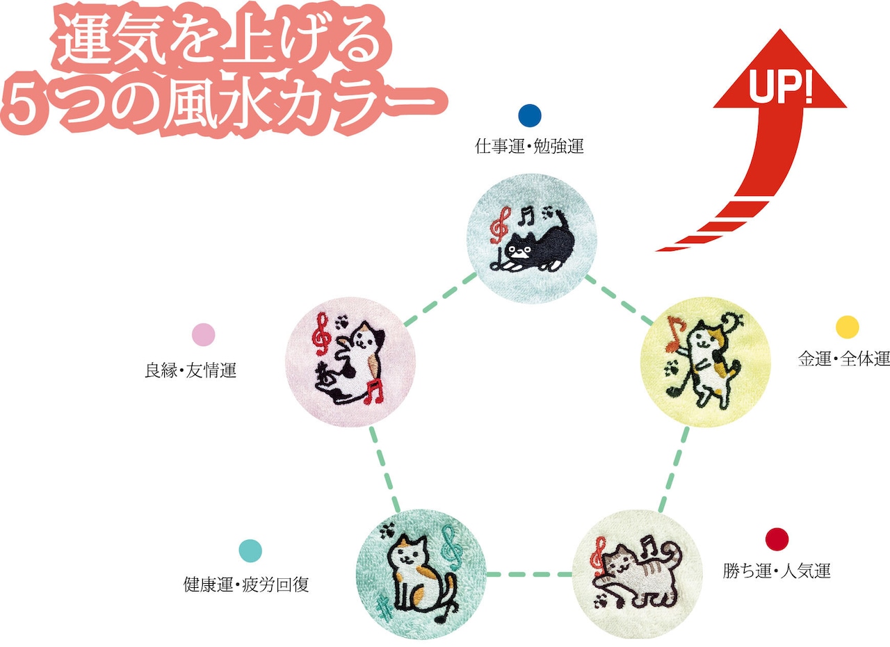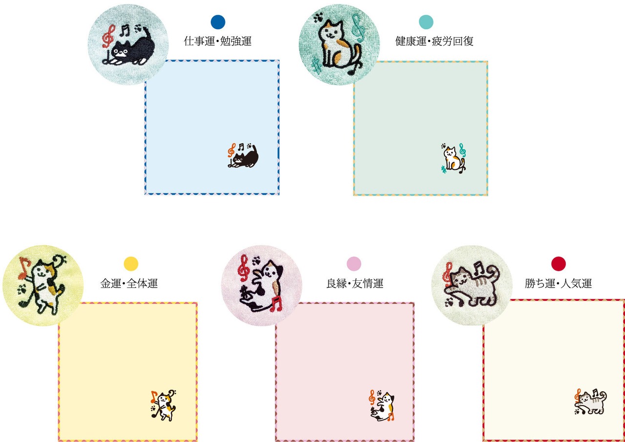 風水にゃんこハンカチ NF-882 あお 仕事運・勉強運