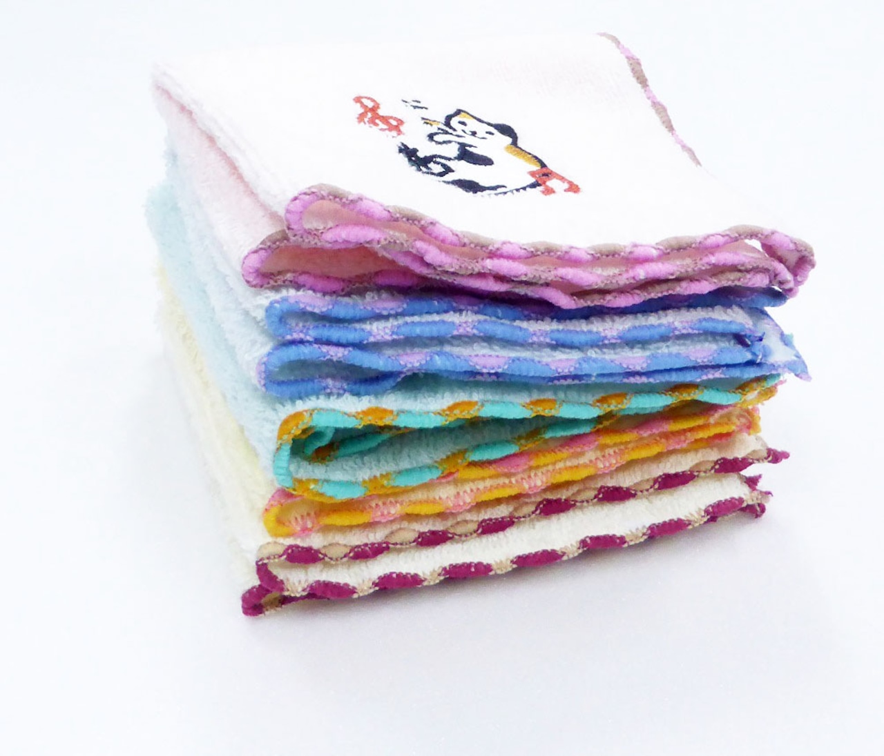 ワンポイント刺繍がかわいい タオルはんかちです。