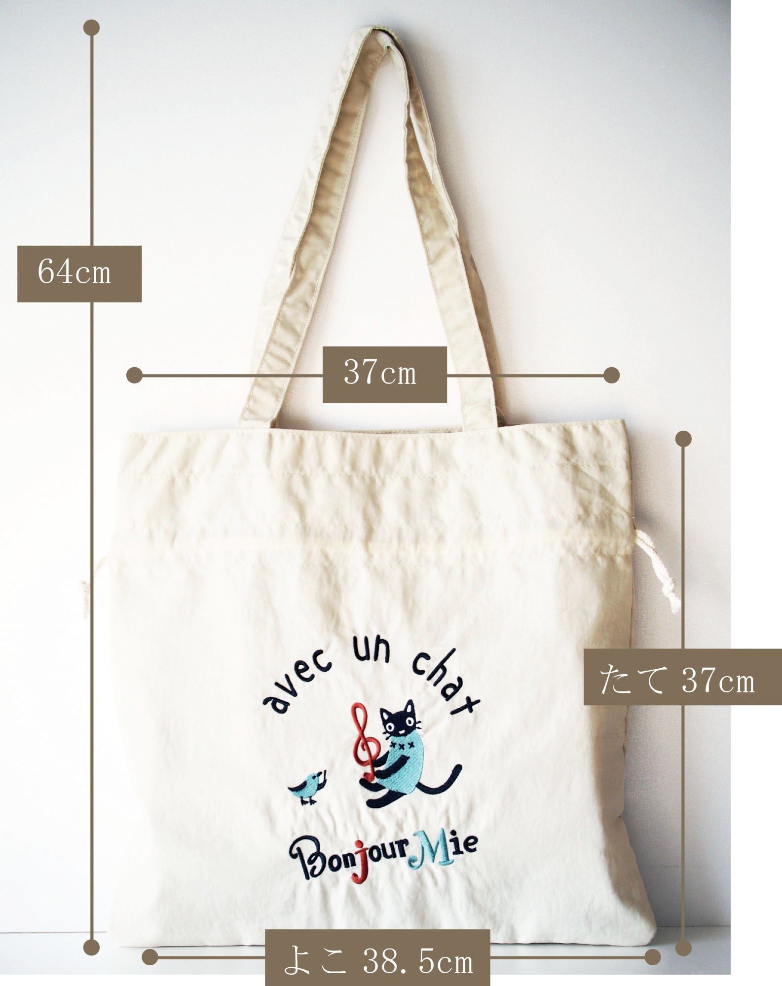 サイズ:(約)横38.5×縦37cm 持ち手長さ:(約)60㎝