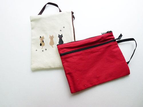 持ち手のついたぺたんこなポーチです。