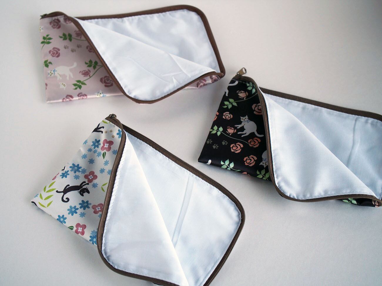 大きく広げられるL字ファスナーで、スムーズに出し入れできます。